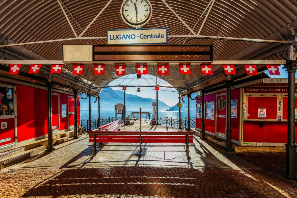 Lakeside relaxation meets Swiss-Italian flair, framed by alpine peaks and Mediterranean vibes.